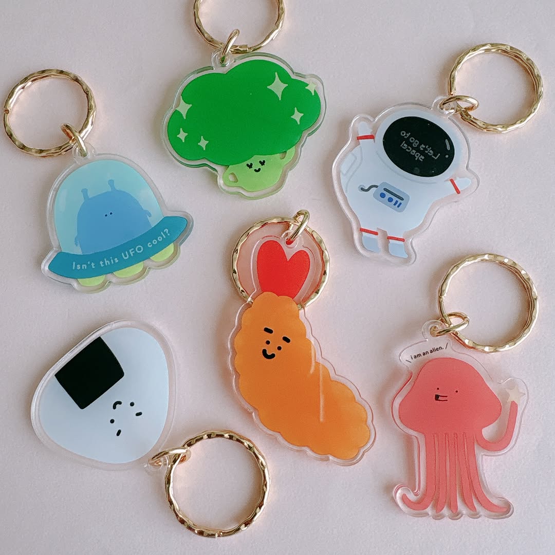 好きなモチーフはあるかな? 両面印刷でしっかり厚みのあるアクリルキーホルダー♪