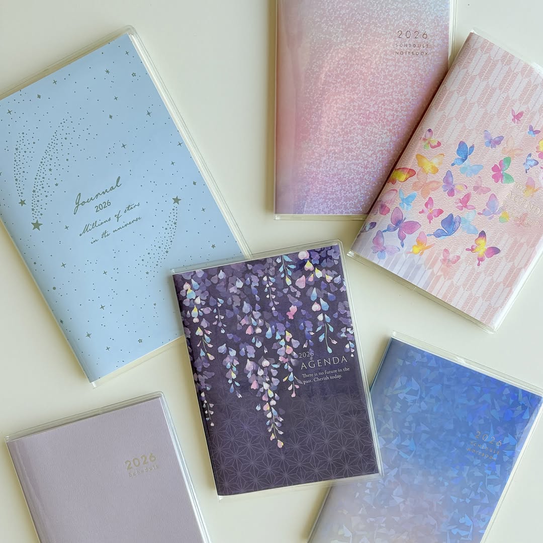 今回登場しているのは、4月始まりで新生活に合わせやすいスケジュール帳。持ち運びしやすいA6サイズから、書き込みやすいB6サイズまで揃い、見た目もオーロラや花柄、星モチーフなど幅広いテイストが展開されています。