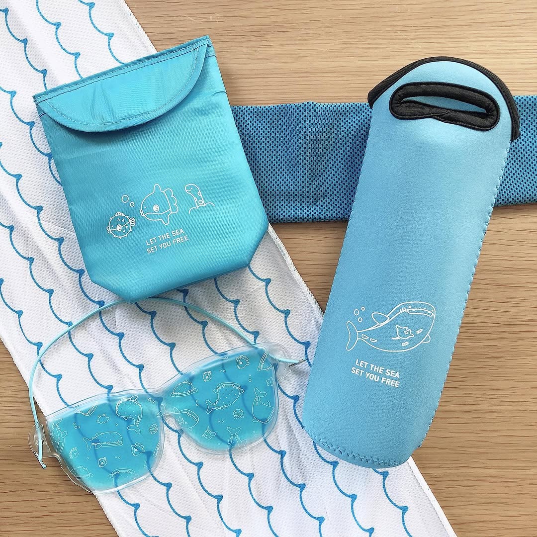 見た目のかわいさだけでなく、日常で使う場面を想像しやすいのがポイントです。たとえば、外出時にクールタオルを首に巻く、冷たい飲み物を保冷ポーチに入れる、帰宅後にジェルアイマスクで目元を休める、といった使い分けができます。