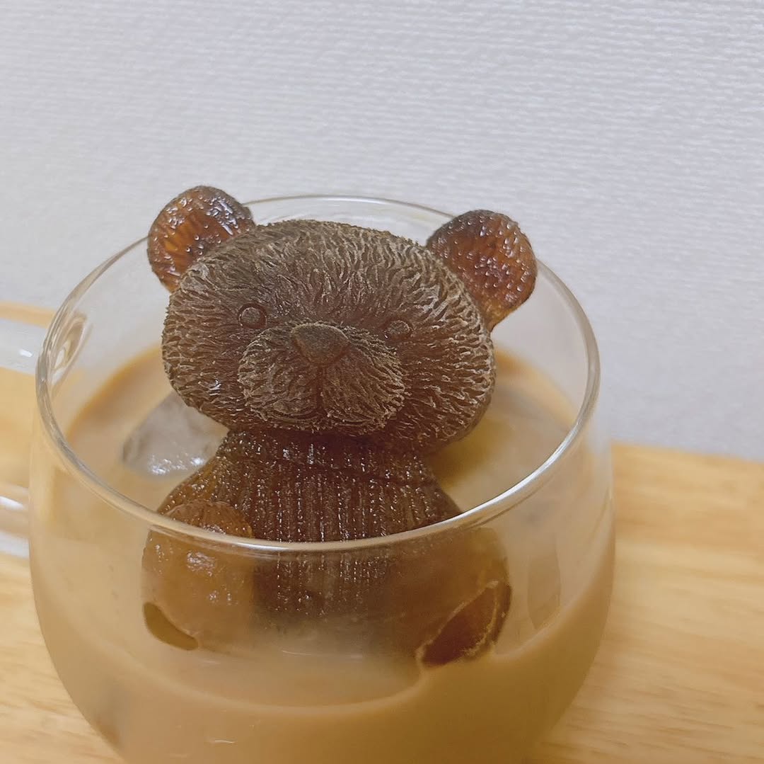 シリコン素材の型に液体を流し込み、凍らせることで立体的なくまの氷が作れるアイテムです。氷自体がデザインになるため、グラスに入れるだけで見た目の印象がぐっと変わります。特に透明な飲み物やミルク系ドリンクとの相性がよく、日常の一杯を少し特別なものにしてくれます。