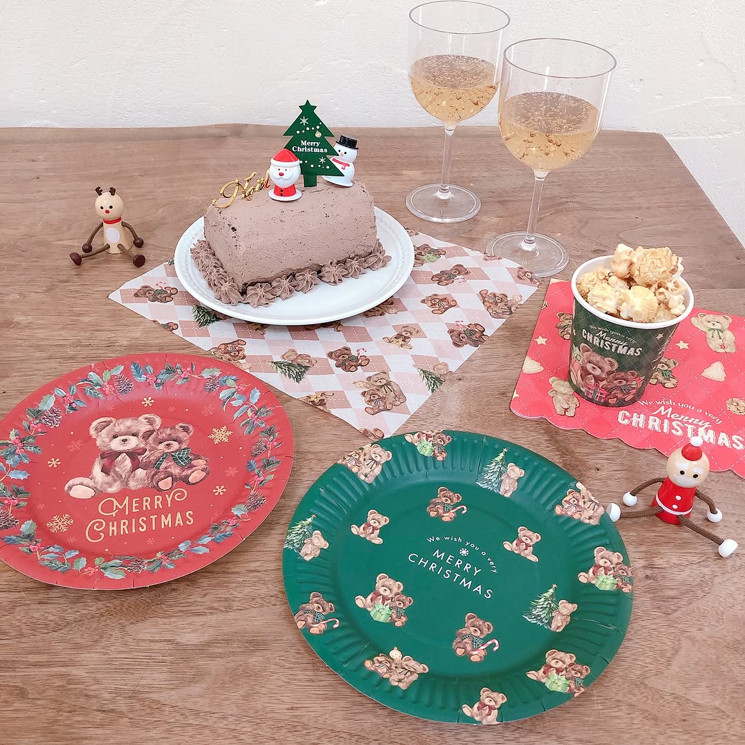 今回のラインナップは、ツリーに飾るオーナメントや卓上デコレーション、さらにパーティーで使える紙皿やカップまで幅広い構成です。100円台中心ながら、見た目はしっかり季節感があり、統一感のあるデザインが特徴。ベアやサンタ、雪だるまといった親しみやすいモチーフで、家族イベントにも取り入れやすい印象です。
