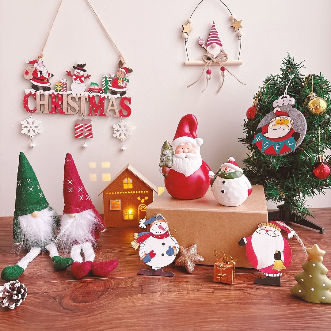 今回のラインナップは、サンタや雪だるま、ツリーなどの定番モチーフを中心にした小型のインテリア雑貨です。素材はテラコッタやウッド、フェルトなどが使われており、ナチュラル寄りの雰囲気が特徴。派手すぎないので、リビングはもちろん、玄関や棚の一角にもなじみやすいのがポイントです。