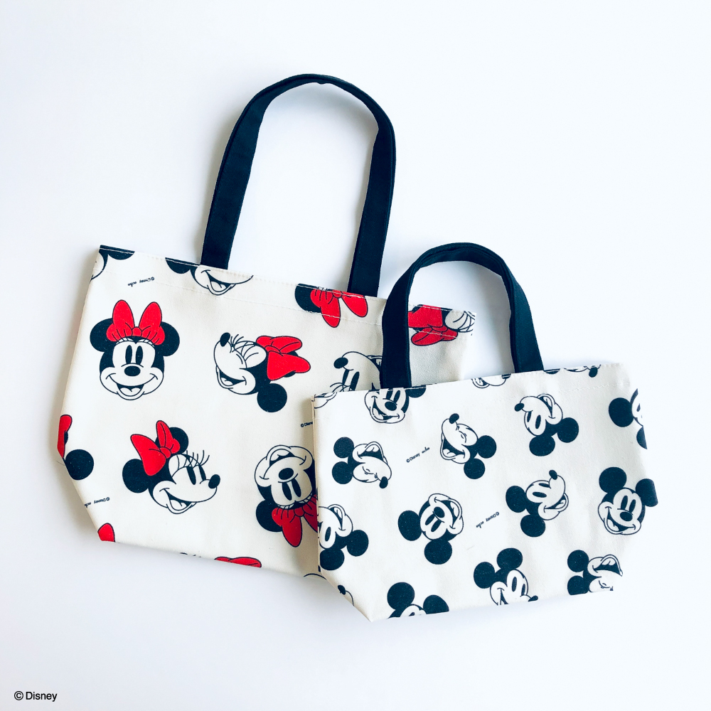 キャンドゥのディズニートートバッグは、ミッキー&ミニーの大きなフェイスデザインが目を引くアイテム。サイズ違いで使い分けでき、日常使いから旅行のサブバッグまで幅広く活躍します。