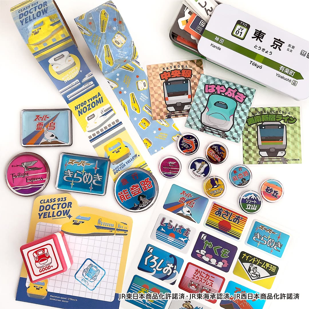 新幹線「はやぶさ」「こまち」や、根強い人気を誇る「923形ドクターイエロー」などをモチーフにした雑貨シリーズです。さらに、昔懐かしいトレインマーク(ヘッドマーク)デザインも含まれており、鉄道ファンにはたまらない構成になっています。