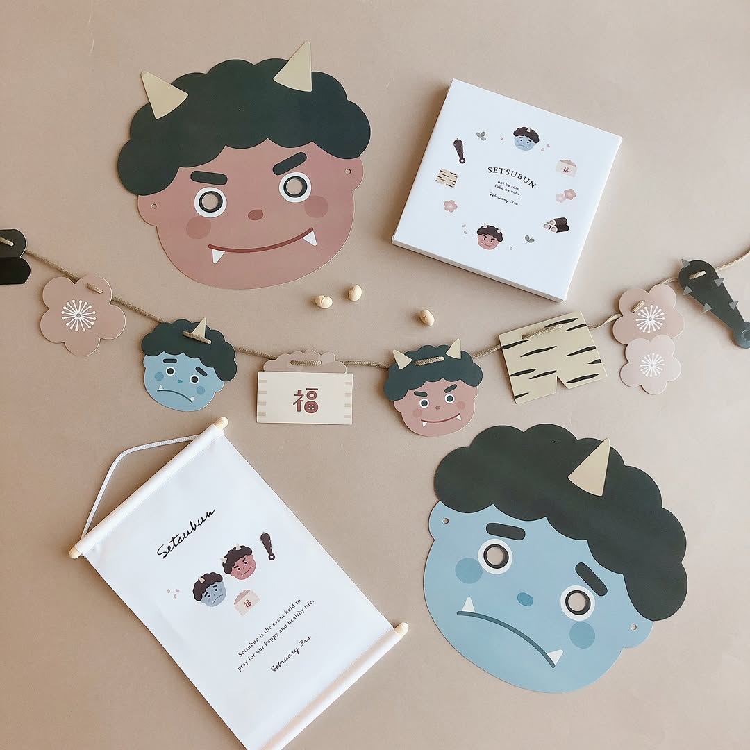 今回の節分シリーズは、遊びとインテリアの両方に使えるのが特徴です。例えば「おめん」は豆まき用としてそのまま使える一方、壁に飾れば簡単なフォトスポットにもなります。「ガーランド」や「タペストリー」は、壁や棚に取り入れるだけで一気に季節感が出るアイテム。