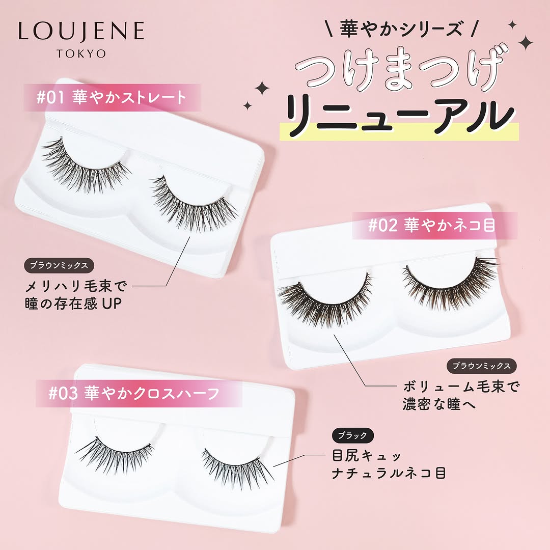 特に内緒シリーズは、自まつげとの境目をぼかすように意識すると違和感が出にくくなります。華やかシリーズはアイラインを少し太めに引くと、根元のラインが目立ちにくくなります。