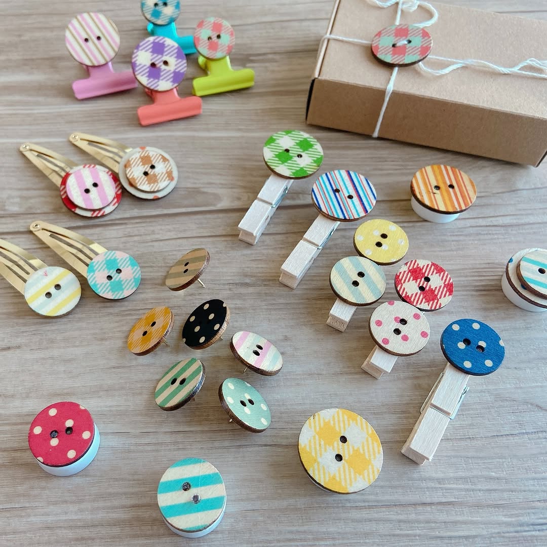 カラフルで柄豊富な木製ボタン