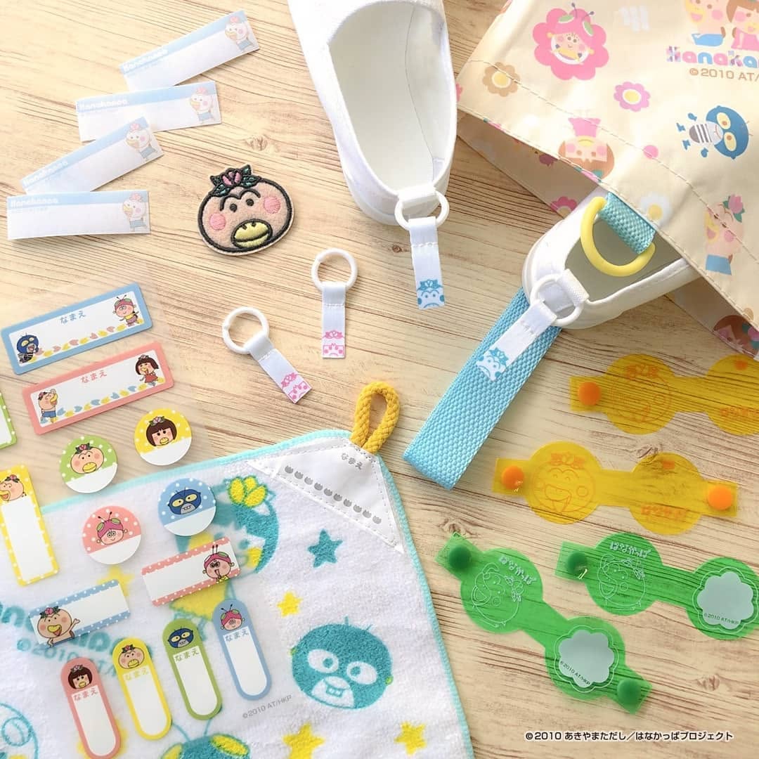 今回のラインナップは、大人気アニメ「はなかっぱ」の世界観を取り入れた新生活向けシリーズです。ネームワッペンやアイロン転写ラベルのような名前付け用品から、巾着、上履き入れ、手提げなどの通園・通学グッズまで幅広く展開されています。さらに、おふろポスターやパズル、シールブック、ドリルなど、家の中で使えるアイテムも含まれているのがポイントです。