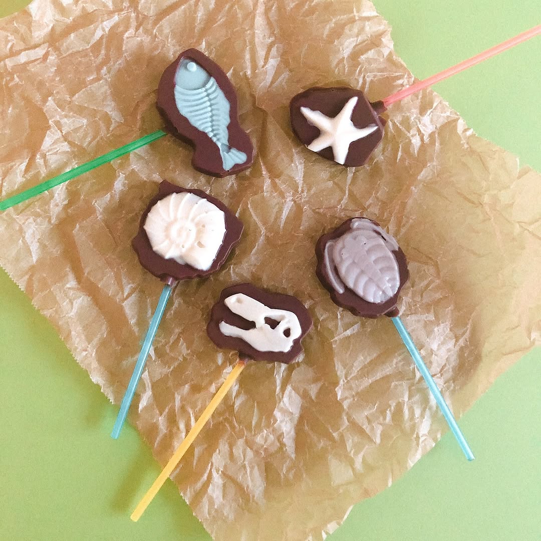 化石型チョコモールドとロリポップスティック