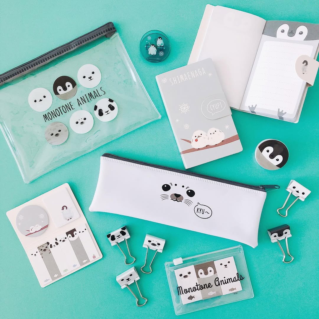 このシリーズは、白・黒を基調にした動物デザインが特徴です。にぎやかなキャラクター雑貨とは違い、落ち着いた配色なので、職場や学校でも使いやすい印象があります。見た目は控えめでも、アザラシやペンギンの丸み、シマエナガやパンダの表情がしっかり伝わるため、手に取るたびに気分が上がるタイプのアイテムです。