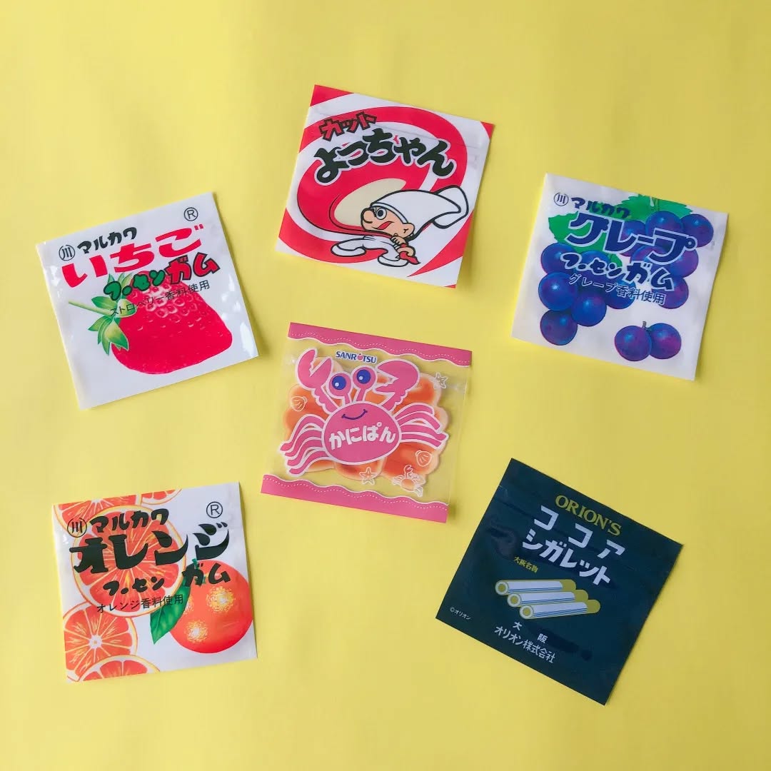 今回の「ジッパーバッグS」は、あのお菓子のパッケージそのままのデザインがポイント。マルカワオレンジ、マルカワグレープ、マルカワいちご、よっちゃんいか、ココアシガレット、かにぱんといった、見覚えのあるパッケージがそろっています。