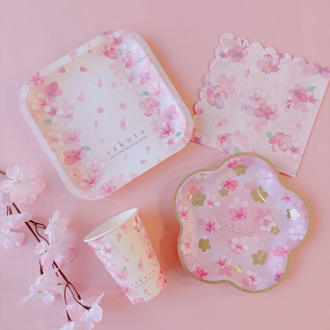 今回のシリーズは、紙皿・紙コップ・ナプキンなど、お花見や屋外ランチに欠かせないアイテムが揃っています。淡いピンクの桜柄で統一されているため、組み合わせるだけでテーブルコーディネートが完成するのが魅力です。