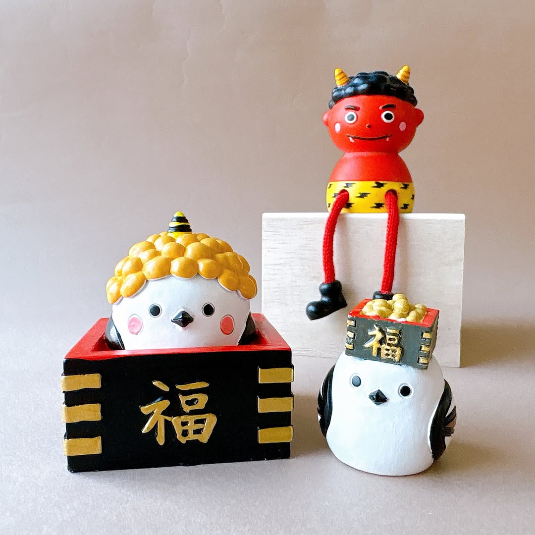 今回のシリーズは、福豆・鬼・恵方巻きといった節分モチーフを、小さく可愛くデザインしたインテリア雑貨です。特にシマエナガをモチーフにしたアイテムが多く、ナチュラル系や可愛い系の部屋にもなじみやすいのが特徴です。