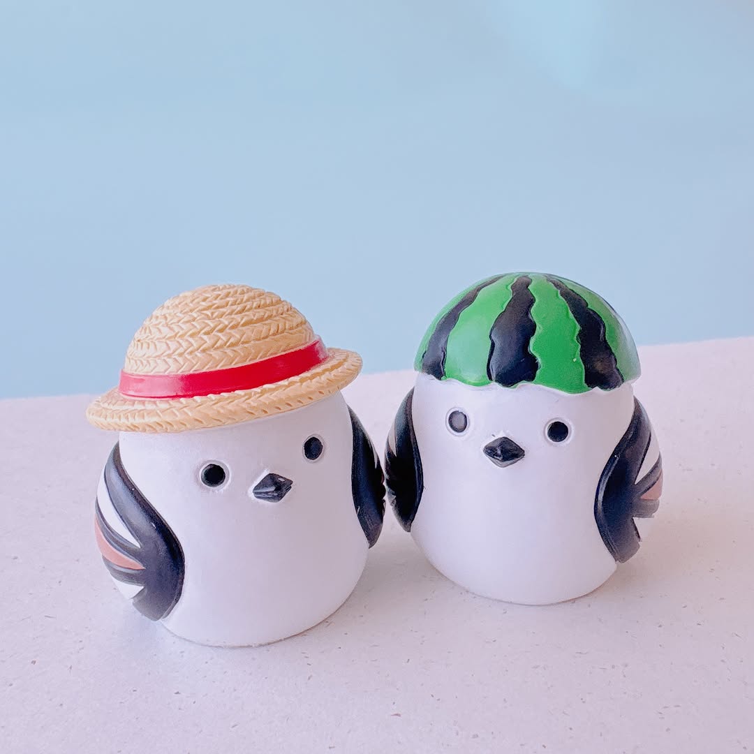 今回のラインナップは、夏の風物詩とシマエナガを組み合わせたミニサイズのインテリア雑貨。麦わら帽子やスイカ、かき氷、お祭りの提灯など、見ているだけで涼しげな気分になるデザインが特徴です。いずれもデスクや棚にちょこんと置けるサイズ感で、主張しすぎず季節感をプラスできます。